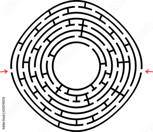 Black round maze with a place for your drawing. An interesting and useful game for children. Simple flat vector illustration isolated on white background.