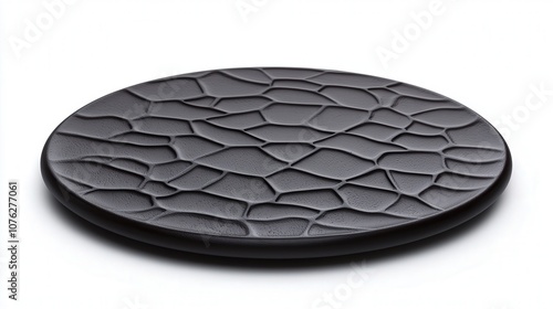 Black Round Plate with Embossed Crocodile Skin Texture for Table Setting