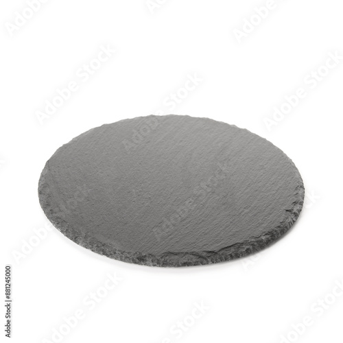Black round slate board on white background