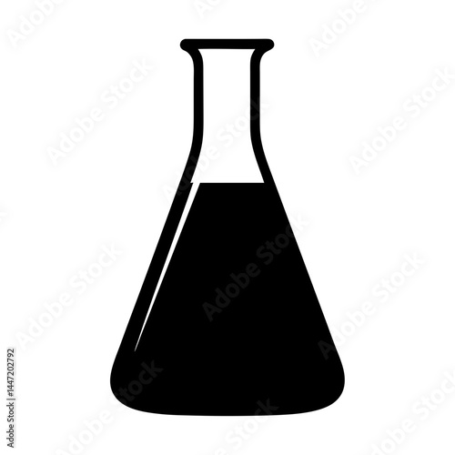 Black science flask with liquid vector on white background used in laboratories