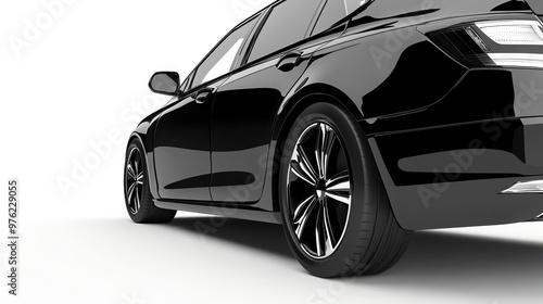 Black sedan with shiny paint and chrome accents.