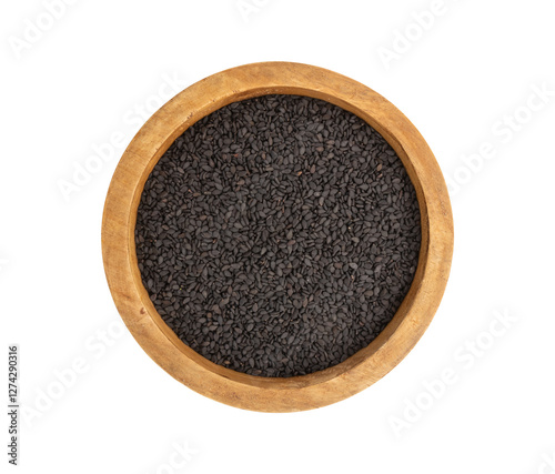 black sesame in wooden bowl isolated