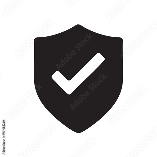 Black shield icon with a white checkmark representing security and protection