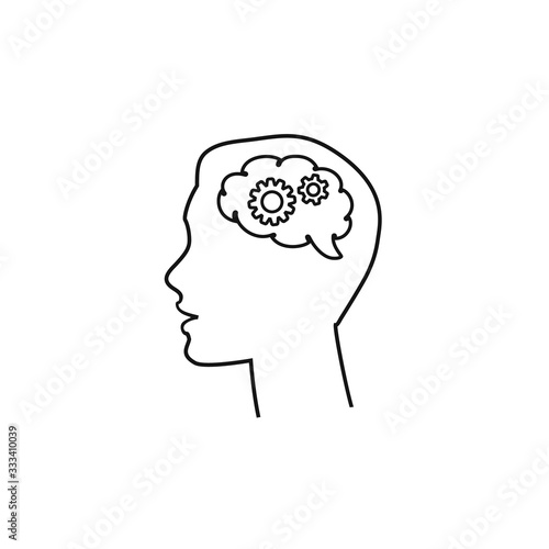 Black silhouette head brain gear, Business man, Vector illustration line icon