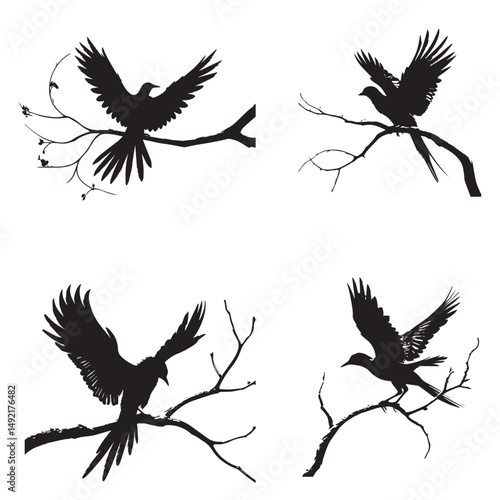 black silhouette of a bird side view isolated