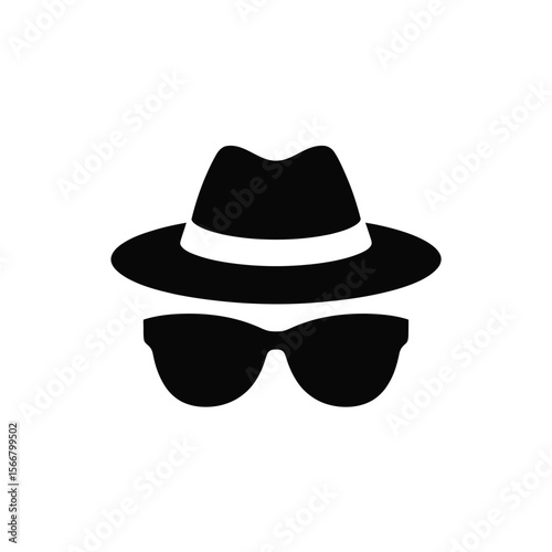 Black silhouette of a fedora hat and sunglasses representing a spy or detective