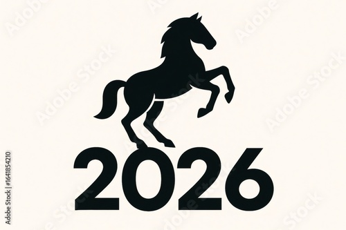 Black silhouette of a prancing horse standing on the number 2026, representing the chinese zodiac sign for that year