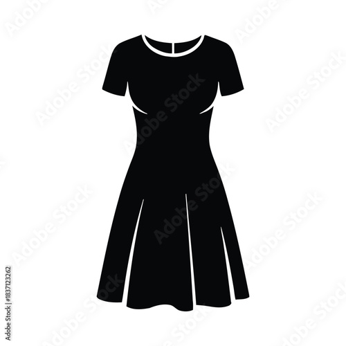 Black silhouette of a short-sleeved A-line dress on a white background frock garment