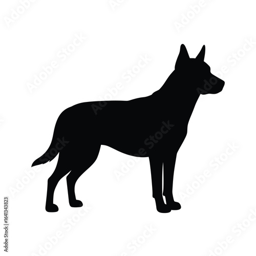 Black silhouette of a standing dog isolated on a white background, a simple and elegant graphic representation of a domestic canine