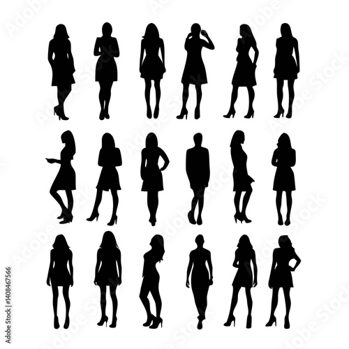 Black silhouette of woman big set, Female silhouette. Women's equality day. International Women's Day. Set of vector womens silhouettes