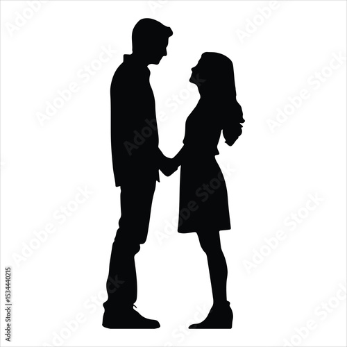 Black Silhouette Romantic Couple Holding Hands Facing Each Other Love Affection vector
