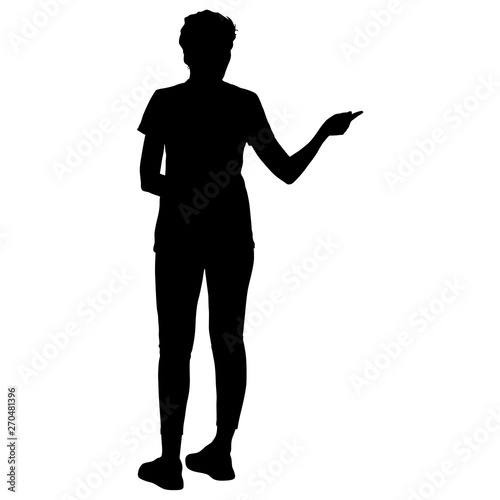 Black silhouettes woman with arm raised on a white background