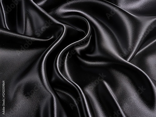 Black silk fabric with elegant folds and soft highlights on a smooth surface