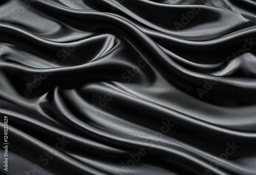 black silk satin background. Soft wavy folds on the fabric.