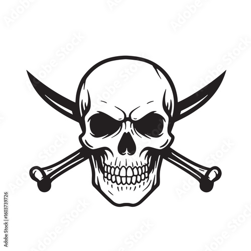 Black skull and crossbones with swords white
