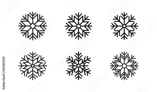 black snowflake icon line art illustration set