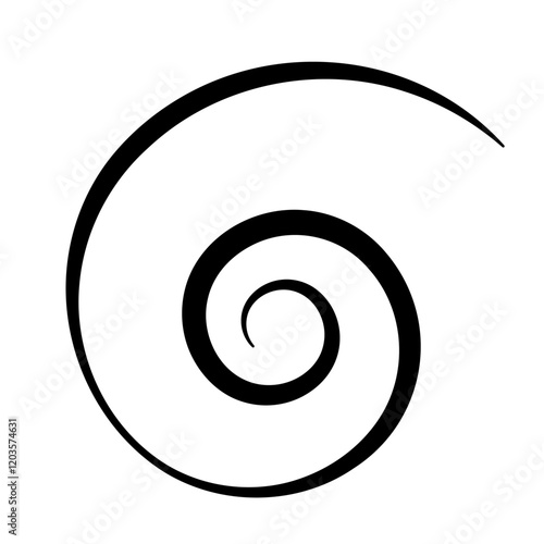 Black spiral swirl. Simple vector geometric curl element. Thin line