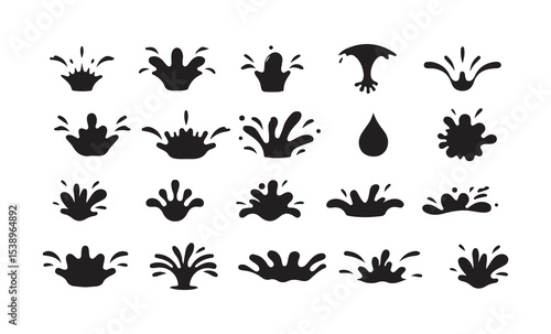 Black Splash Icons Set. Water, Liquid, and Paint Drop Silhouettes Collection. Victor illustration eps 10