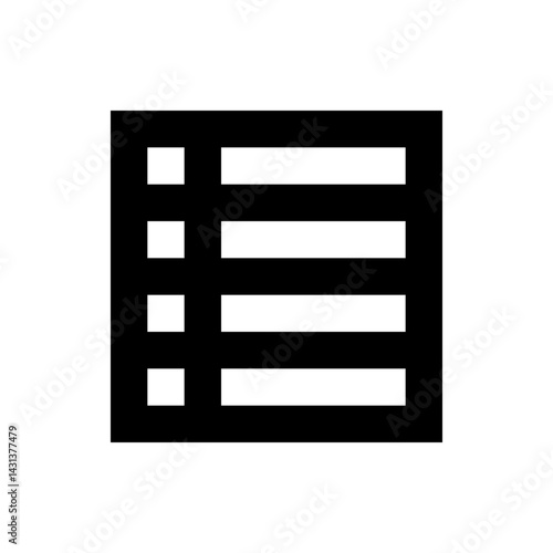 Black square containing four rows of horizontal lines with square bullets on the left side of each row