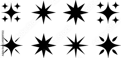 Black starburst shapes and sparkle icons symbol