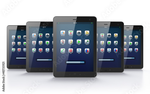 Black tablets on white background
