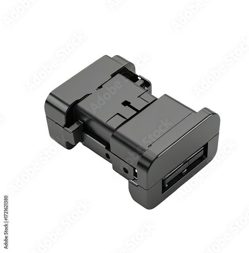 Black USB-C adapter studio shot, close-up