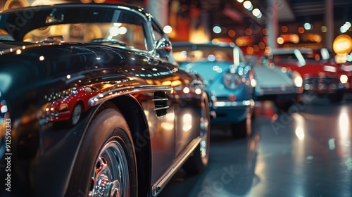 Black Vintage Car in Showroom.