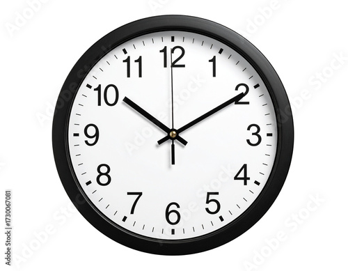 Black Wall Clock Side Angle with White Face and Subtle Shadow Isolated on Transparent Background