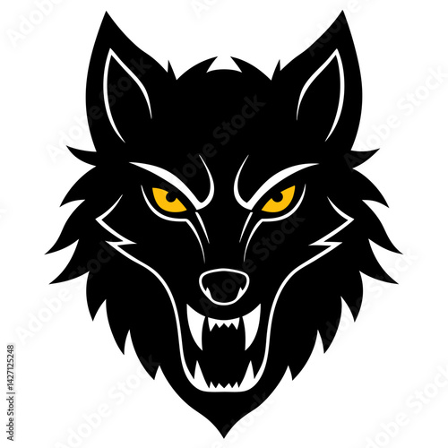 Black Wolf Illustration: A striking graphic illustration of a fierce black wolf, rendered in a bold style, ready to make a statement.