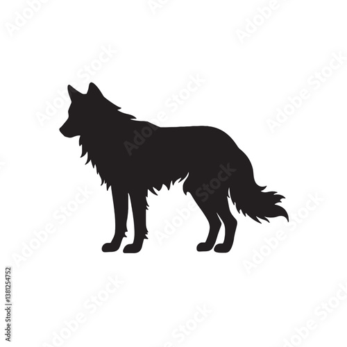 Black wolf vector illustration, a wild canine silhouette isolated on white