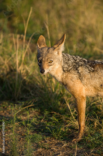 Black-Backed Jackal (Canis mesomelas) standing in tall grass, Masai Mara, Kenya