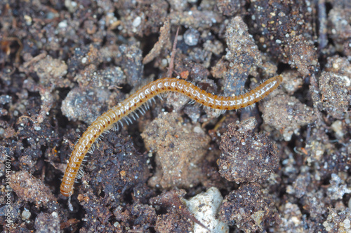 Blaniulus guttulatus, commonly known as the spotted snake millipede is a species of millipede in the family Blaniulidae. This worm living in the soil. Destroys seeds and young plants of many species.