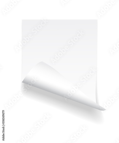 Blank A4 sheet of white paper with curled corner and shadow, template for your design. Set. Vector illustration