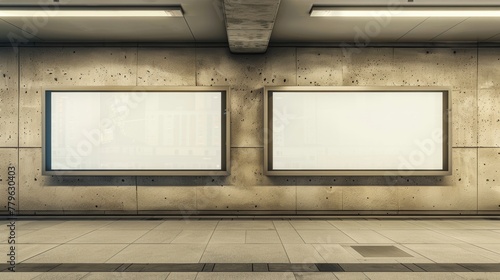 Blank billboard ad space in a modern subway station