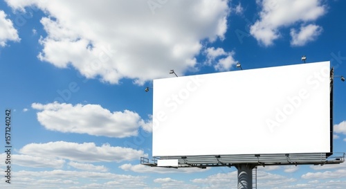 Blank billboard against a partly cloudy blue sky, ready for advertising.