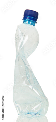 Blank crumpled plastic bottle isolated on white.