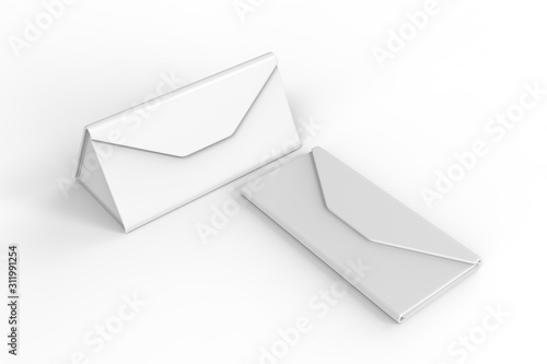 Blank Folding Triangle Magnetic Hard Case Box for Sunglasses for branding design. 3d render illustration.
