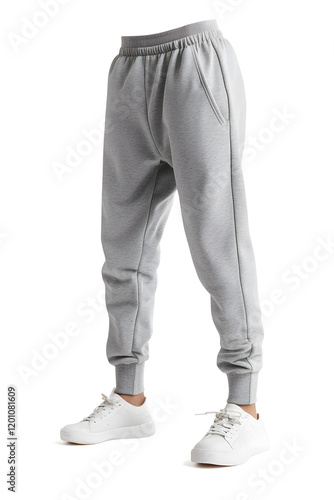 Blank grey sport man's sweatpants mockup, front view, isolated on white background