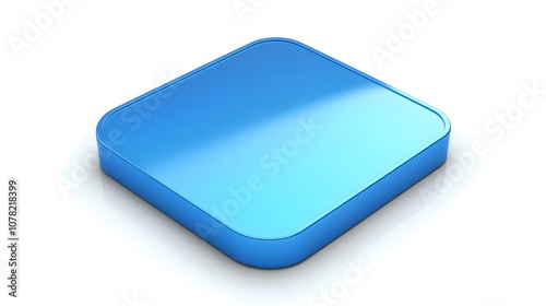 Blank Mobile application icon, button - blue square with round corners. 3d rendering, white background