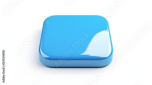 Blank Mobile application icon, button - Blue square with round corners. 3d rendering, white background