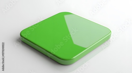 Blank Mobile application icon, button - green square with round corners. 3d rendering, white background