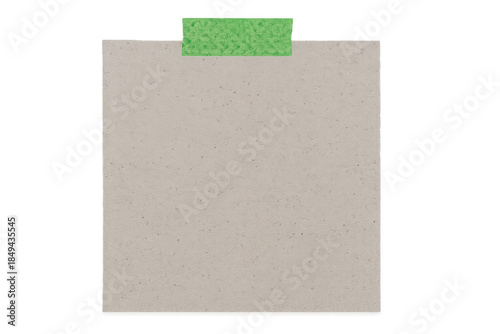 Blank paper note with green adhesive tape, empty space for message or reminder, transparent background