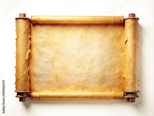Blank Parchment Scroll, Open Scroll Frame, White Background, Generative AI Art, Conceptual Photography