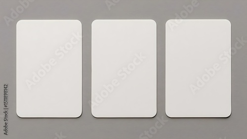 Blank Trading Cards Mockup – 3 Rounded Corner Cards on Gray Background for Branding Presentation