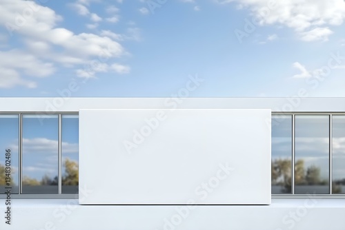 Blank White Big Rectangular Box on Shop Mockup in a Skyscraper Setting