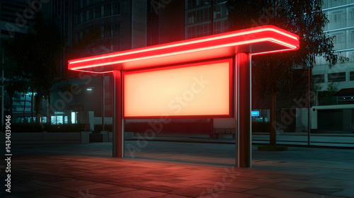 Blank White Billboard at a City Bus Stop at Night