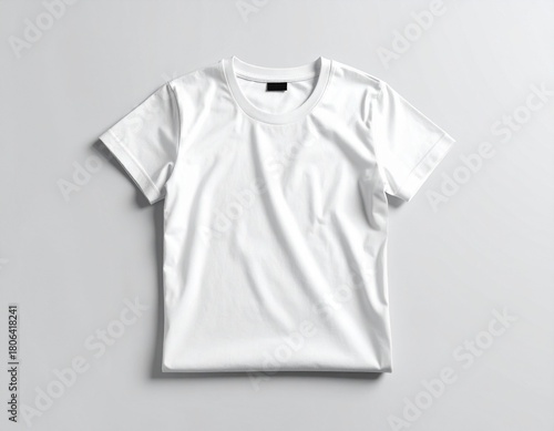 Blank White Cotton T Shirt Mockup Lay Flat on Light Background