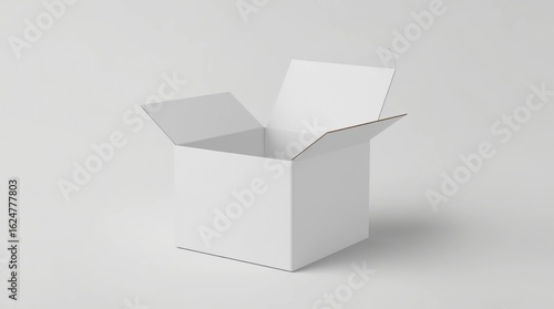Blank white cube gift box with opened hinged flap lid on white background. Clipping path around box mock up. 3d illustration
