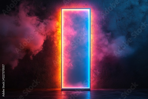 Blank white glowing pylon mockup, isolated in darkness, 3D rendering