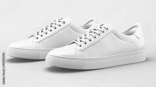 Blank white leather sneakers with lace mockup front and back 3D rendering Empty sporty shoes for walking or running mockup isolated side view Clear breathable footgear template